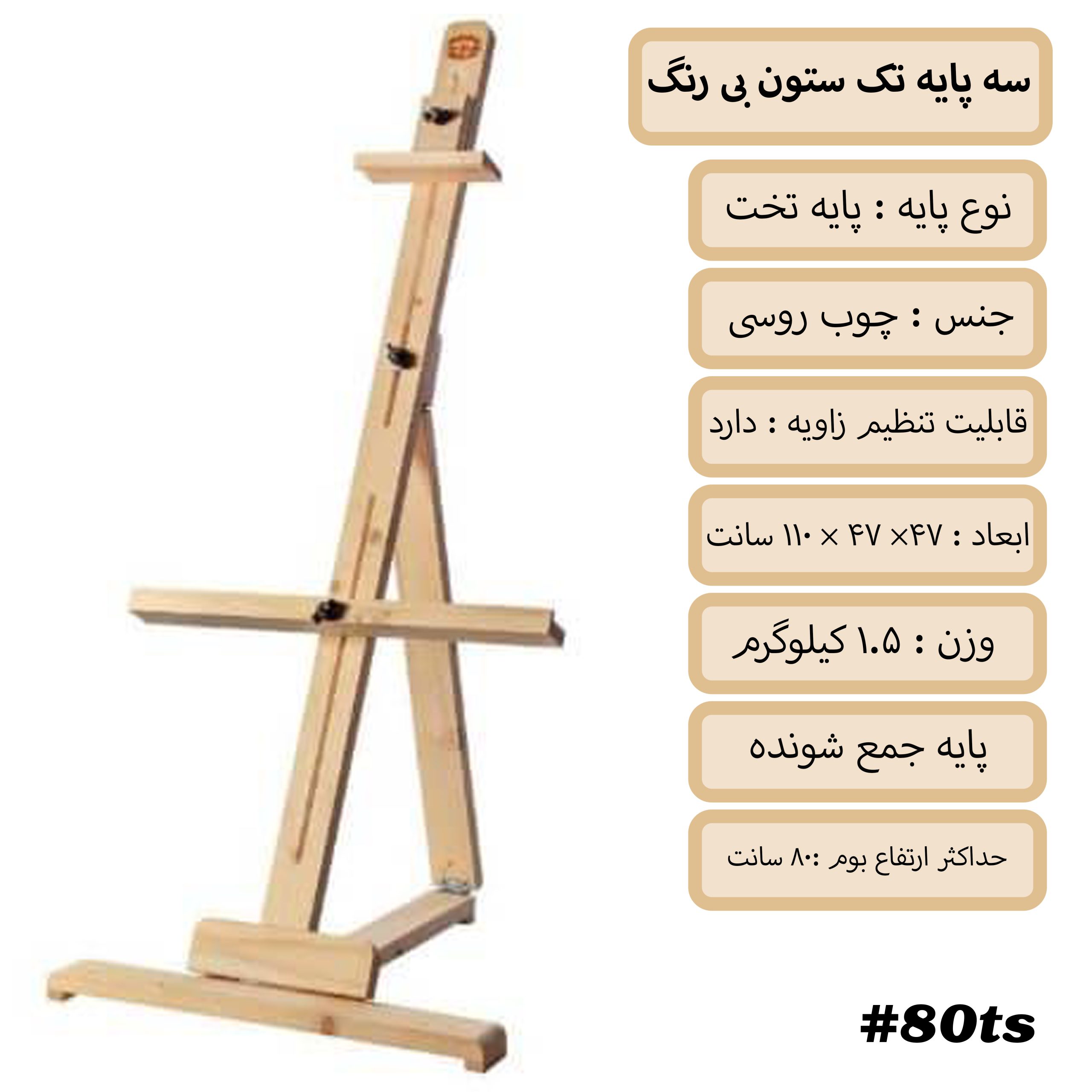 نوع پایه : تخت جنس : چوب روسی قابلیت تنظیم زاویه : دارد ارتفاع سه پایه : 110 سانتی متر عرض سه پایه : 47 سانتی متر حداکثر ارتفاع بوم قابل استفاده بر روی سه پایه : 80 سانتی متر دارای پایه جمع شونده دارای قابلیت تنظیم زاویه توسط پایه پشتی   ارسال توسط باربری…
